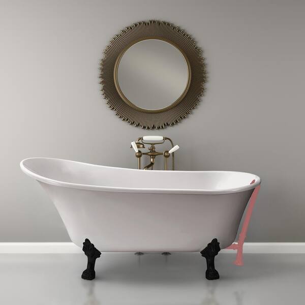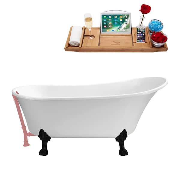 63 in. x 28.3 in. Acrylic Clawfoot Soaking Bathtub in Glossy White with Matte Black Claw Feet and Matte Pink Drain