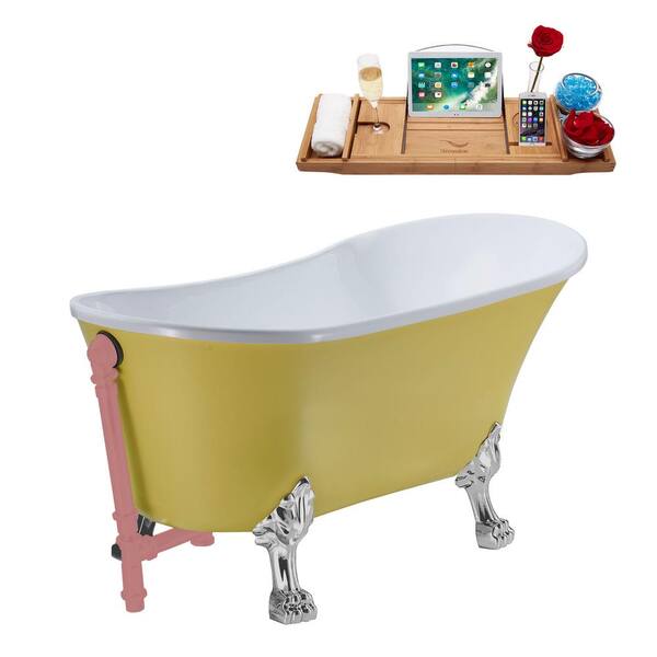63 in. x 28.3 in. Acrylic Clawfoot Soaking Bathtub in Matte Yellow with Polished Chrome Clawfeet and Matte Pink Drain