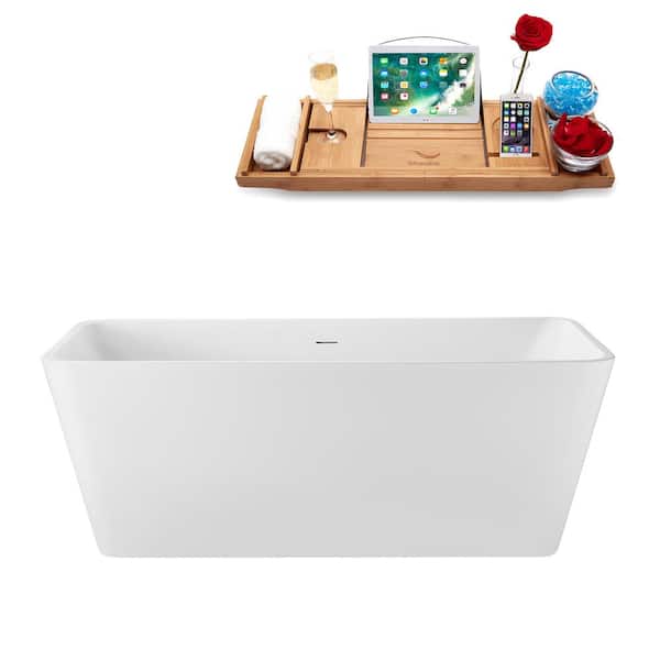 63 in. x 30 in. Acrylic Freestanding Soaking Bathtub in Glossy White with Polished Gold Drain, Bamboo Tray