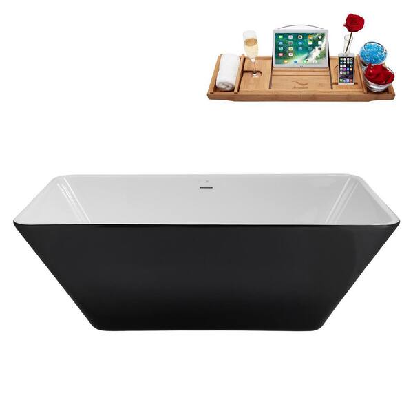 63 in. x 32 in. Acrylic Freestanding Soaking Bathtub in Glossy Black with Brushed Gold Drain