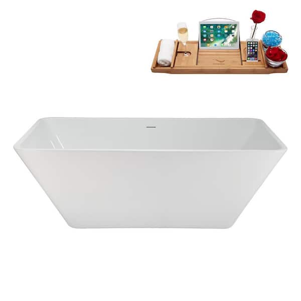 63 in. x 32 in. Acrylic Freestanding Soaking Bathtub in Glossy White With Polished Brass Drain