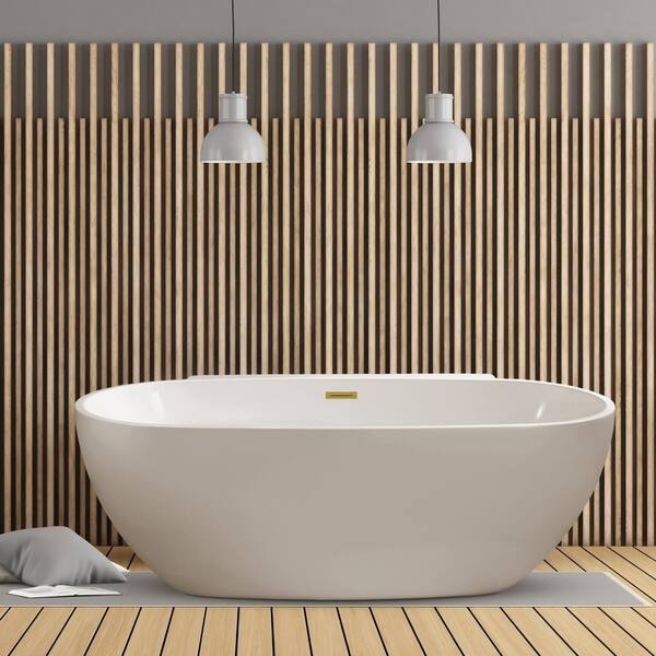 65 in. x 32 in. Acrylic Freestanding Soaking Bathtub in Glossy White With Brushed Gold Drain