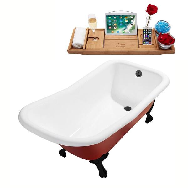 66 in. x 30 in. Cast Iron Clawfoot Soaking Bathtub in Glossy Red with Matte Black Clawfeet and Matte Black Drain