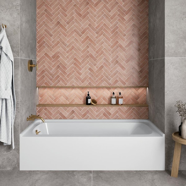 66 in. x 32 in. Soaking Acrylic Alcove Bathtub with Left Drain in Glossy White, External Drain in Brushed Gold