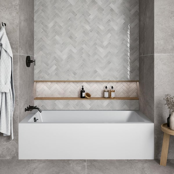 66 in. x 32 in. Soaking Acrylic Alcove Bathtub with Left Drain in Glossy White External Drain in Matte Oil Rubbed Bronze