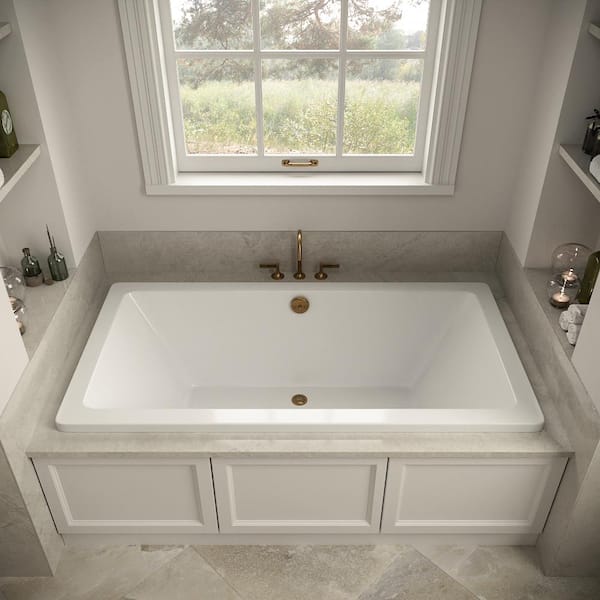 66 in. x 34 in. Rectangular Acrylic Soaking Drop-In Bathtub, with Center Drain in Brushed Gold