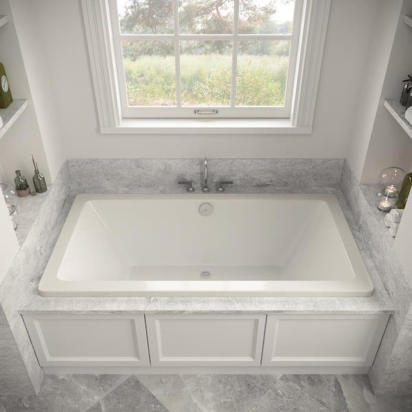 66 in. x 34 in. Rectangular Acrylic Soaking Drop-In Bathtub, with Center Drain in Glossy White