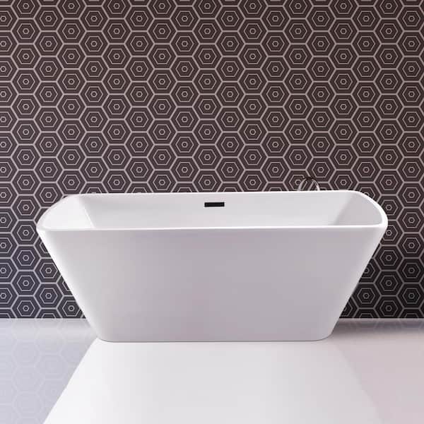 67 in. Acrylic Flatbottom Non-Whirlpool Bathtub in Glossy White with Matte Black Drain and Overflow Cover