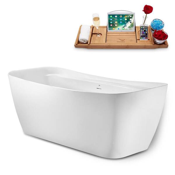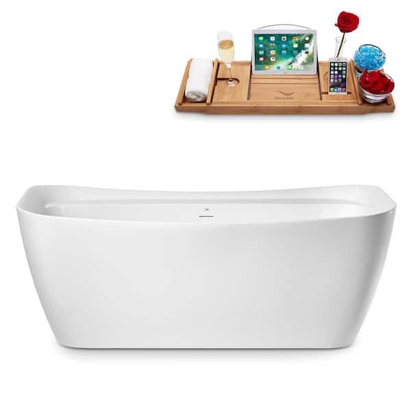 67 in. Acrylic Flatbottom Non-Whirlpool Bathtub in Glossy White with Oil Rubbed Bronze