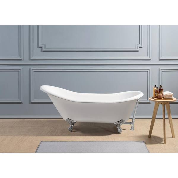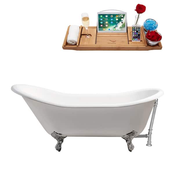 67 in. Cast Iron Clawfoot Non-Whirlpool Bathtub in Glossy White with Polished Chrome Drain And Polished Chrome Clawfeet