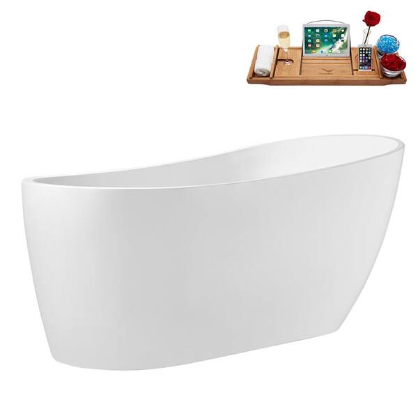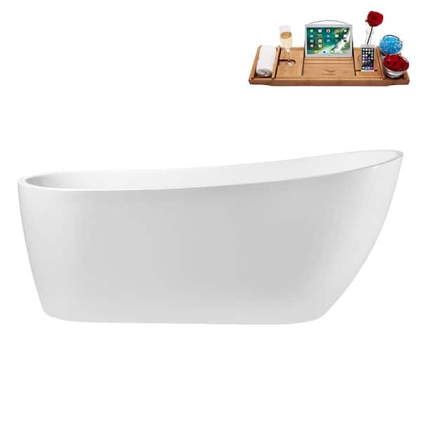 67 in. x 28 in. Acrylic Freestanding Soaking Bathtub in Glossy White with Brushed GunMetal Drain, Bamboo Tray