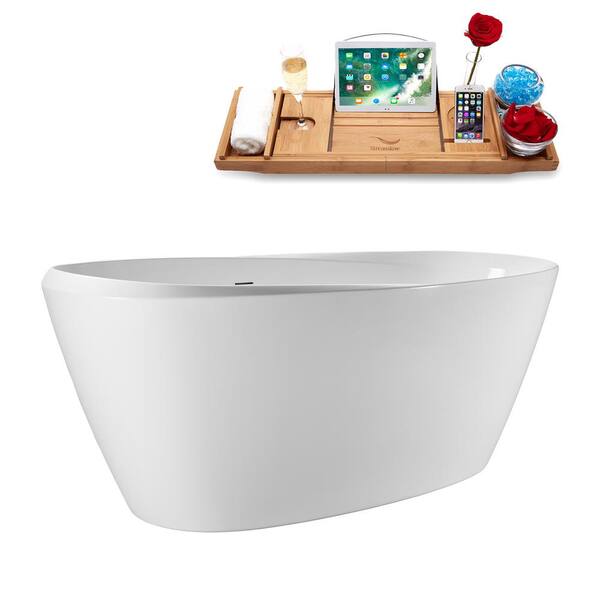 67 in. x 30 in. Acrylic Freestanding Soaking Bathtub in Glossy White with Brushed Nickel Drain, Bamboo Tray