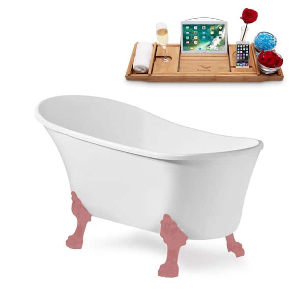67 in. x 31.5 in. Acrylic Clawfoot Soaking Bathtub in Glossy White with Matte Pink Clawfeet and Matte Pink Drain