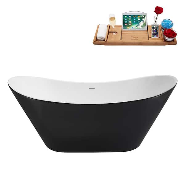 67 in. x 31 in. Acrylic Freestanding Soaking Bathtub in Glossy Black with Brushed Nickel Drain