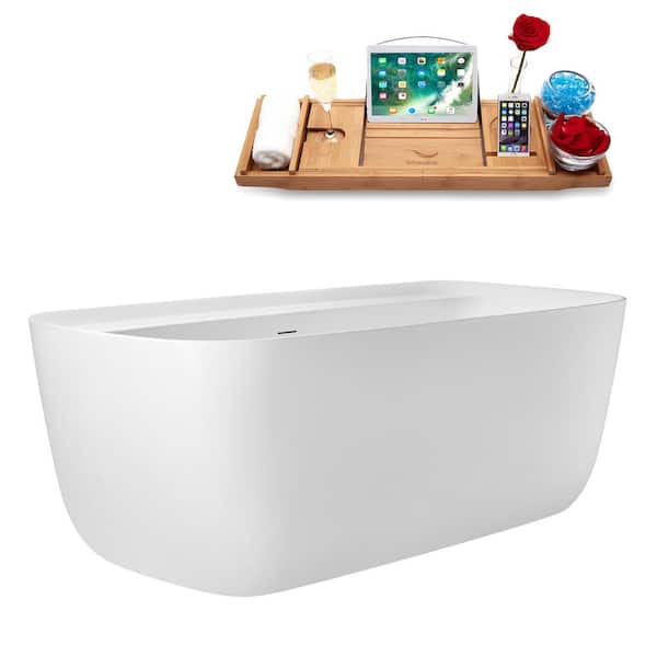 67 in. x 31 in. Acrylic Freestanding Soaking Bathtub in Glossy White with Brushed Nickel Drain, Bamboo Tray