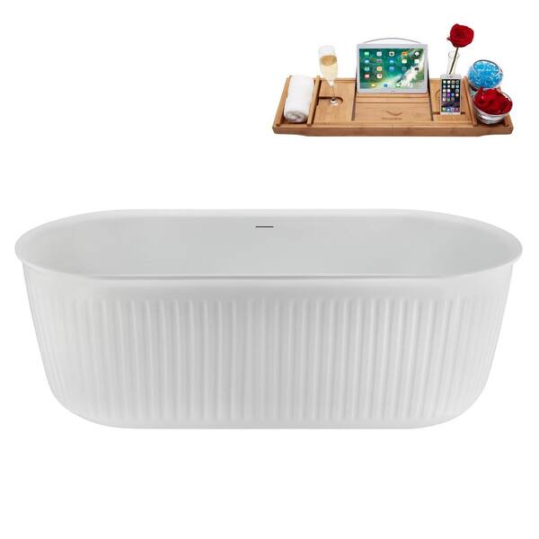 67 in. x 31 in. Acrylic Freestanding Soaking Bathtub in Glossy White with Glossy White Drain, Bamboo Tray