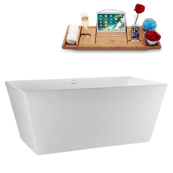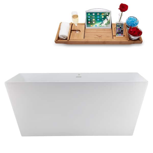 67 in. x 31 in. Acrylic Freestanding Soaking Bathtub in Glossy White with Glossy White Drain