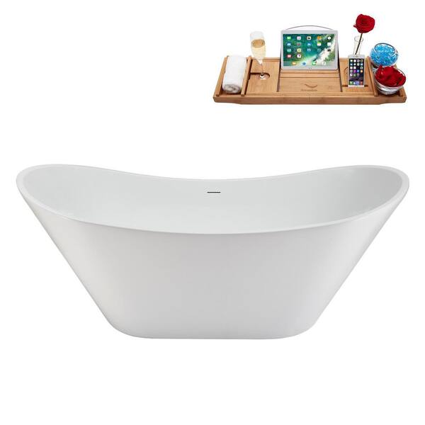 67 in. x 31 in. Acrylic Freestanding Soaking Bathtub in Glossy White with Polished Gold Drain