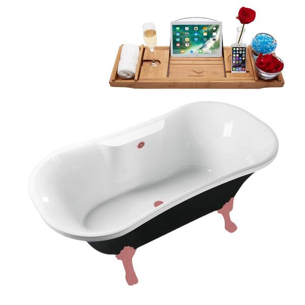 68 in. x 34 in. Acrylic Clawfoot Soaking Bathtub in Glossy Black with Matte Pink Clawfeet and Matte Pink Drain