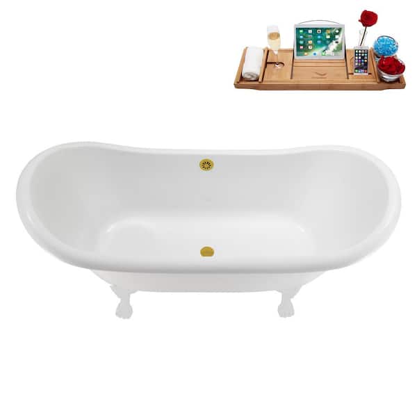 71 in. x 31 in. Acrylic Clawfoot Soaking Bathtub in Glossy White with Brushed Gold Drain and Glossy White Clawfeet