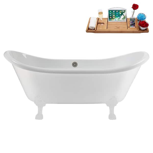 71 in. x 31 in. Acrylic Clawfoot Soaking Bathtub in Glossy White with Brushed GunMetal Drain and Glossy White Clawfeet
