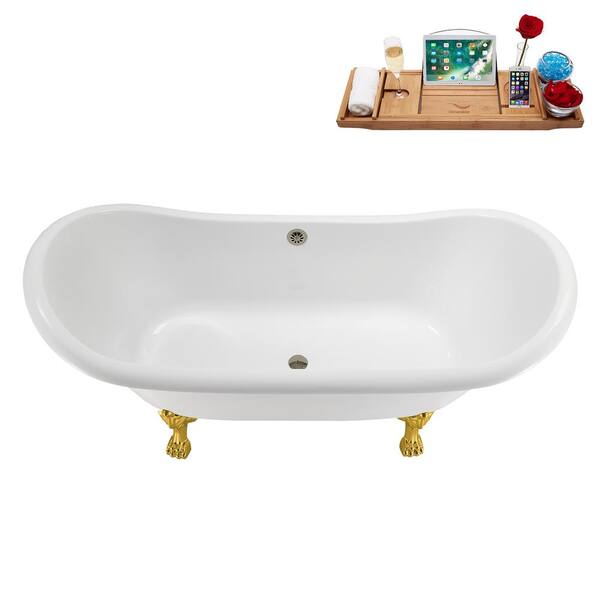 71 in. x 31 in. Acrylic Clawfoot Soaking Bathtub in Glossy White with Brushed Nickel Drain and Polished Gold Clawfeet