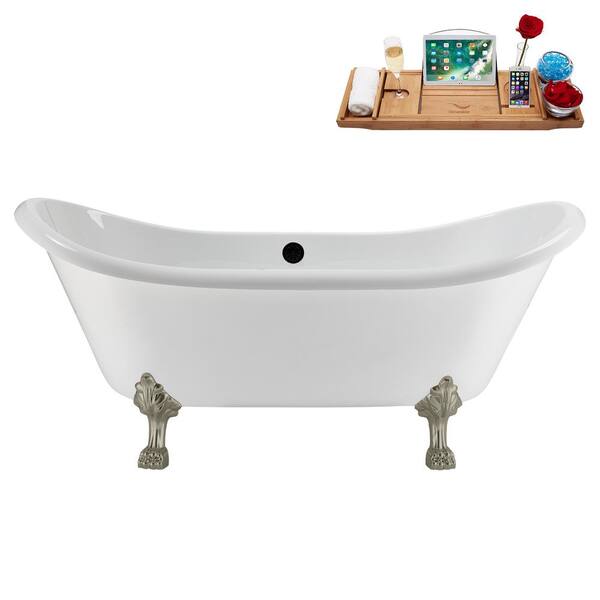 71 in. x 31 in. Acrylic Clawfoot Soaking Bathtub in Glossy White with Matte Black Drain and Brushed Nickel Clawfeet