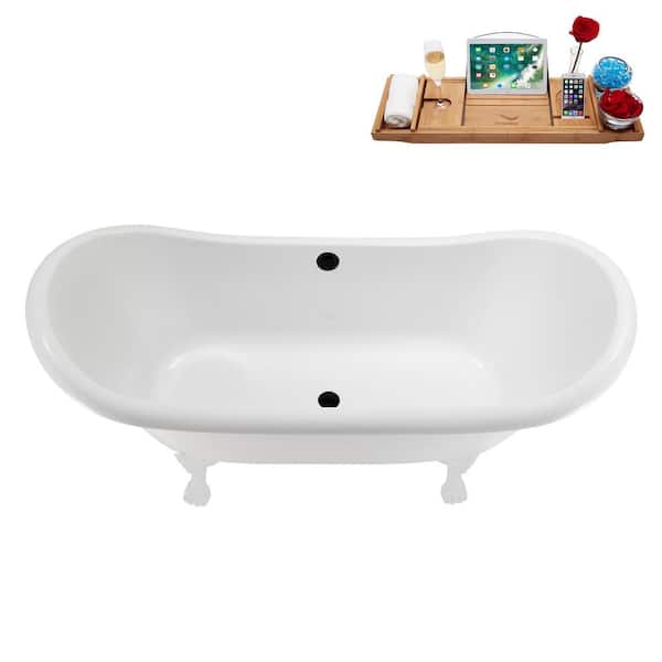 71 in. x 31 in. Acrylic Clawfoot Soaking Bathtub in Glossy White with Matte Black Drain and Glossy White Clawfeet