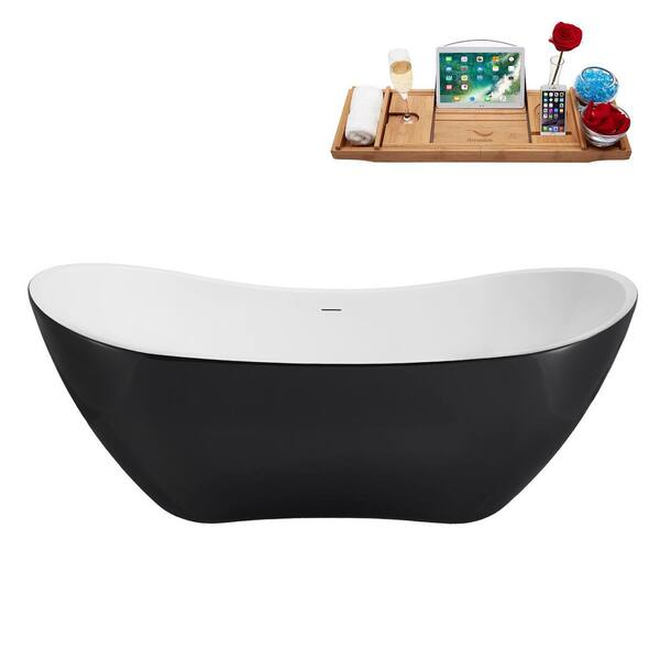 71 in. x 32 in. Acrylic Freestanding Soaking Bathtub in Glossy Black with Brushed Nickel Drain