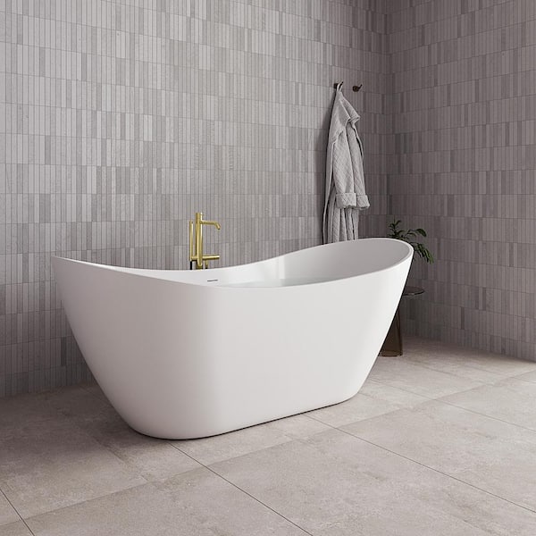 71 in. x 32 in. Acrylic Freestanding Soaking Bathtub in Glossy White with Polished Brass Drain