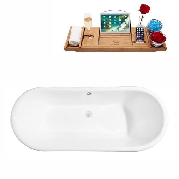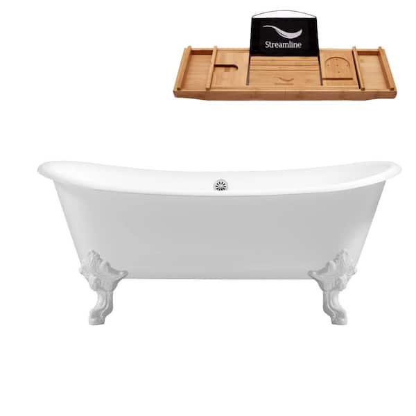 72 in. Cast Iron Clawfoot Non-Whirlpool Bathtub in Glossy White with Glossy White Drain and Glossy White Clawfeet