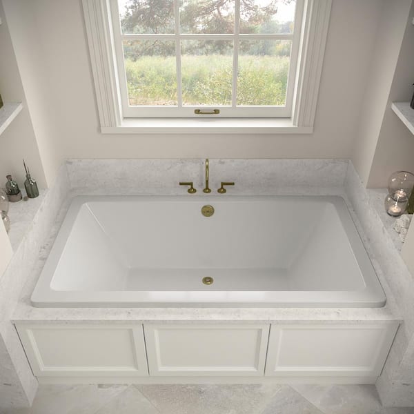 72 in. x 36 in. Rectangular Acrylic Soaking Drop-In Bathtub, with Center Drain in Polished Brass