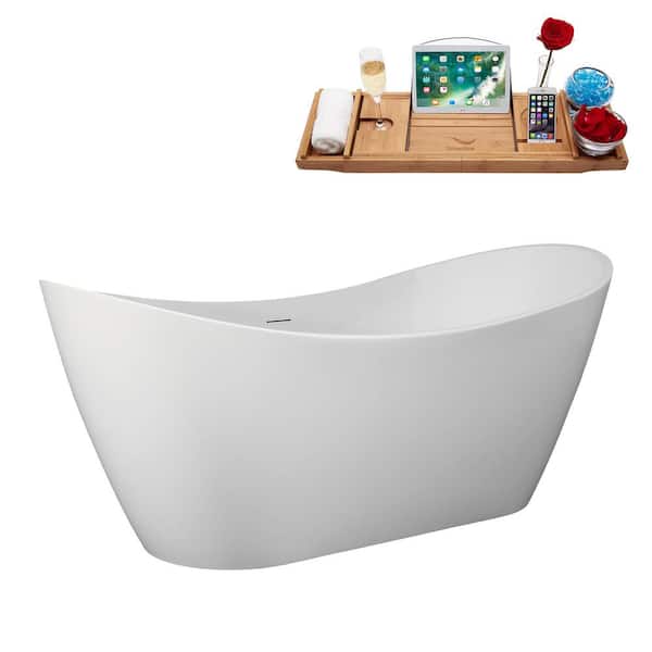75 in. x 35 in. Acrylic Freestanding Soaking Bathtub in Glossy White with Matte Oil Rubbed Bronze Drain, Bamboo Tray
