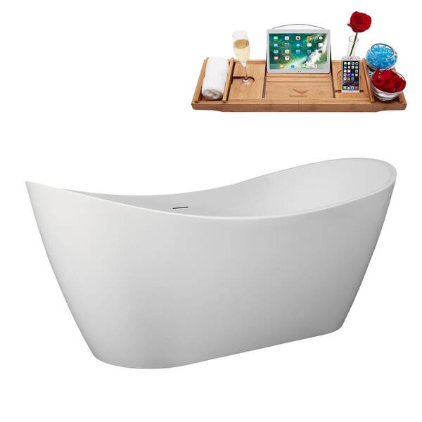 75 in. x 35 in. Acrylic Freestanding Soaking Bathtub in Glossy White with Polished Gold Drain, Bamboo Tray