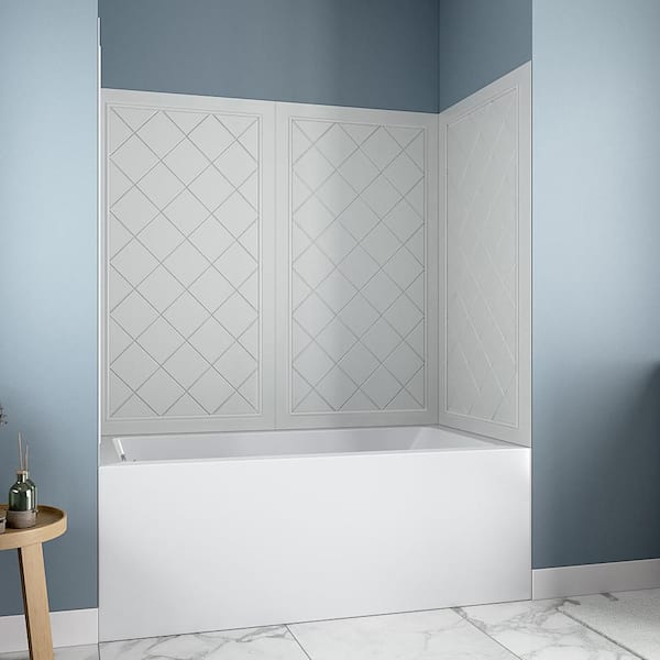 DSH-1160-109 32 in. L x 60 in. W x 55 in. H 4-Piece Glue-Up Alcove Bathtub Wall Surround in White Tile Finish
