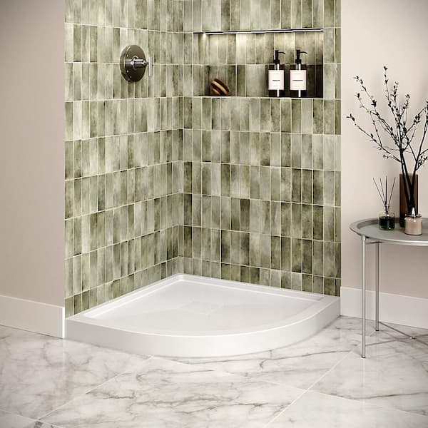DT-2212-85 32 in. x 32 in. Round Corner PP Shower Pan Base in Glossy White with Center Drain, Drain Included