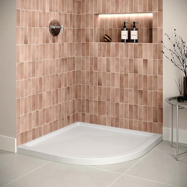 DT-2221-97 38 in. x 38 in. Round Corner PP Shower Pan Base in Glossy White with Center Drain, Drain Included