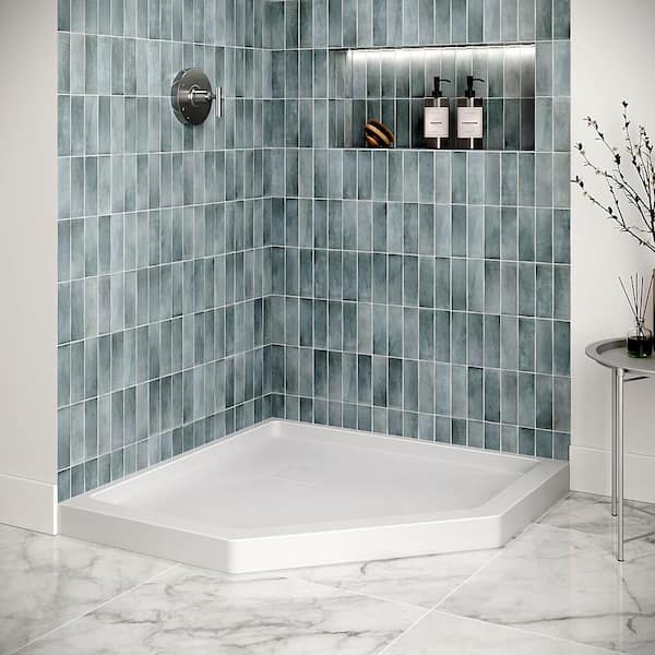 DT-2230-109 38 in. x 38 in. Corner Neo Angle PP Shower Pan Base in Glossy White with Center Drain, Drain Included