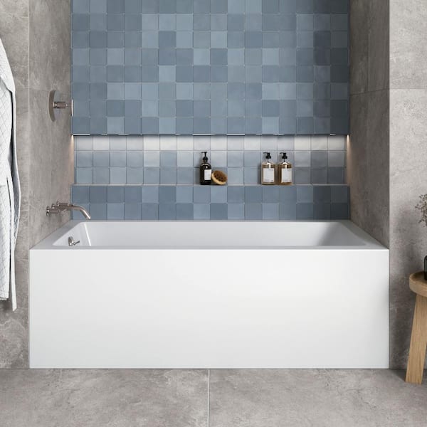 GA-303-8-BNK 66 in. x 34 in. Acrylic Soaking Alcove Bathtub in Glossy White with Left-Hand Drain in Brushed Nickel