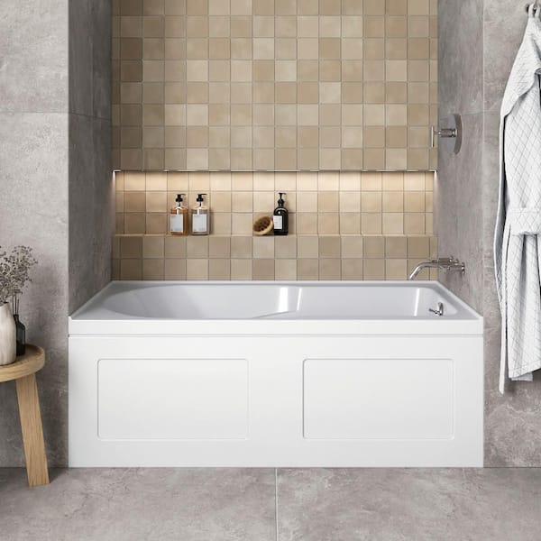 GA-311-24-BNK 60 in. x 32 in. Acrylic Soaking Alcove Bathtub in Glossy White with Right-Hand Drain in Brushed Nickel