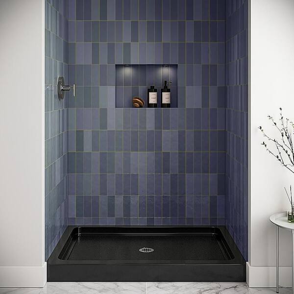 GB-2623-496-BL 48 in. x 48 in. Alcove Acrylic Shower Pan Base in Glossy Black with Center Drain, Drain Included