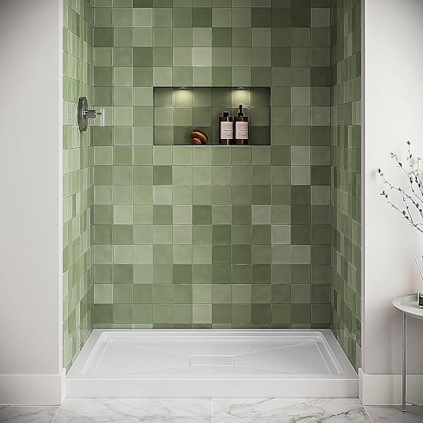 GB-613-456 48 in. x 32 in. Alcove Acrylic Shower Pan Base in Glossy White with Center Drain, Drain Included