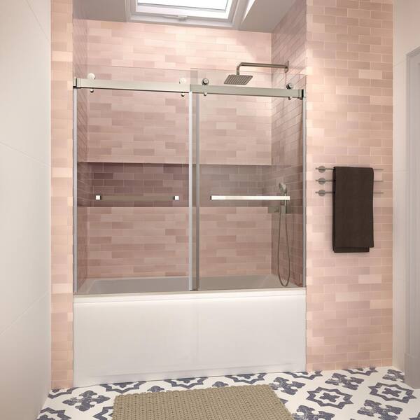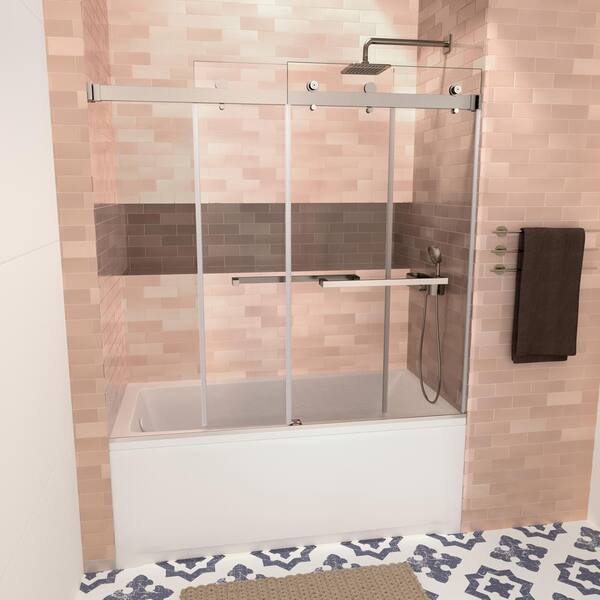 Sele 60 in. W x 58 in. H Sliding Bathtub Door, CrystalTech Treated 5/16 in. Tempered Clear Glass, Chrome Hardware