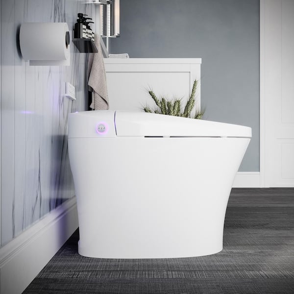Tankless Elongated Smart Bidet Toilet 1.28GPF in White with Auto Flush,Heated Seat,Warm Air Dryer,Soft Close,Foot Sensor