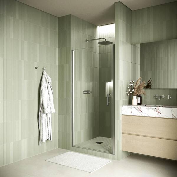 Turano 34 in. W x 72 in. H Pivot Shower Door CrystalTech Treated 1/4 in. Tempered Clear Glass, Polished Chrome Hardware