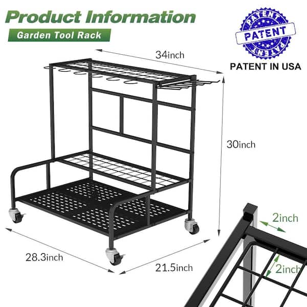 3-Tier Garden Tool Organizer with Wheels for Garage Organization and Storage