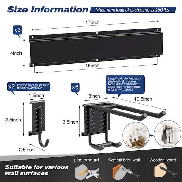 • Wall Mounted Tool Organization with 12 double hooks, 4 rails