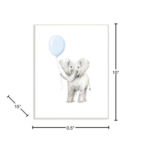 10 in. x 15 in. "Baby Elephant with Blue Balloon Watercolor" by Studio Q Printed Wood Wall Art