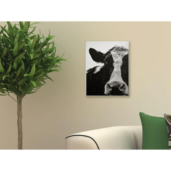 10 in. x 15 in. "Cow Black And White Close Up" by Lettered and Lined Printed Wood Wall Art