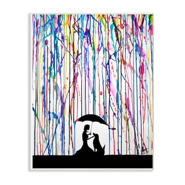 10 in. x 15 in. "Melting Colors Rainbow Rain Drops Umbrella Dog Silhouette" by Marc Allante Wood Wall Art
